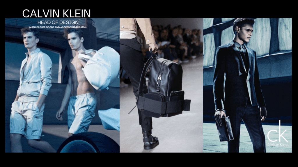 At Calvin Klein, I defined the global design language for accessories, translating minimalism into structured systems that connected Milan, New York, and Asia. My work merged discipline, cultural awareness, and contemporary relevance, shaping products and collections that balanced heritage with modernity.