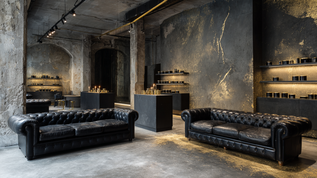 Original scent compositions developed as olfactive design objects — not curated selections, but authored formulations. Sculptural cement vessels as one-of-a-kind art objects. Material research, form, and surface resolved into a single act. Collaborations with niche artists and independent craftspeople. Exclusive fragrance partnerships with design-forward resorts and concept boutiques.